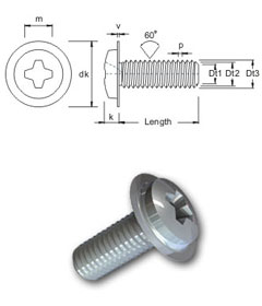 Hex Washer W/ Head Dimensions Machine Screws Phillips Recess